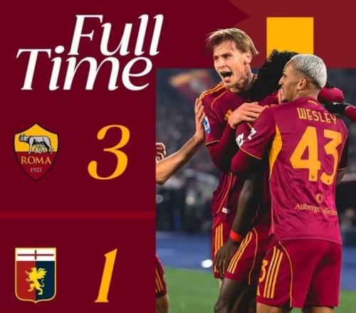 罗马31热那亚升至第四2025自然年积分榜高居意甲榜首