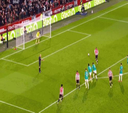 第58分钟,范戴克在禁区边缘踢到瓦塔纳,不过裁判根据VAR提示认定在犯规地点在禁区线上,于是判罚点球。第60分钟,蒂亚戈操刀命中,布伦特福德扩大优势,3-1!