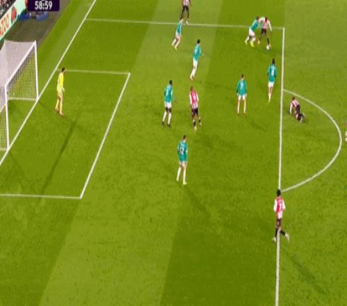 第44分钟,加克波禁区内疑似被绊倒,裁判没有理会,布伦特福德踢出快速反击,达姆斯高送出直塞,沙德单刀推射建功,2-0!