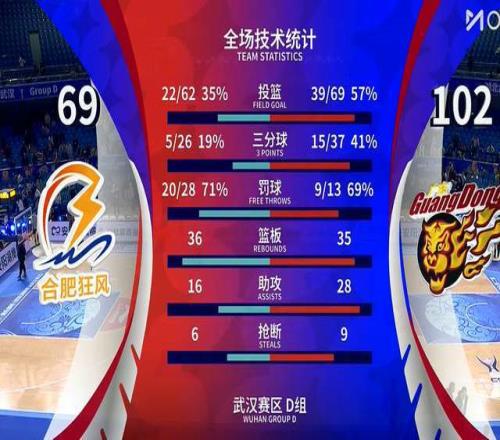 末节决战,广东男篮开局还能保持40+的领先,可能是优势太大了,杜锋派上年轻人出战,合肥狂风男篮抓住机会,迫近分差。当然,前面建立起来的优势足够大,广东男篮不会让对手翻盘的。最终,广东男篮以102-69大胜合肥狂风男篮,顺利挺进8强。