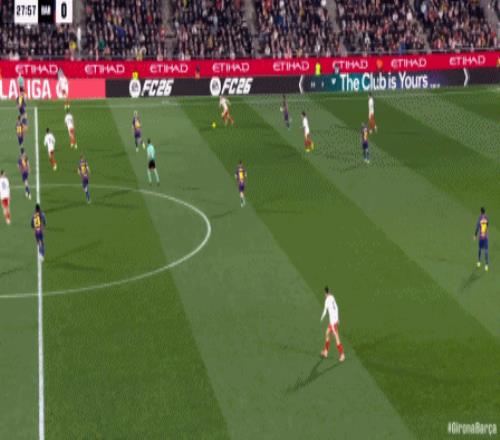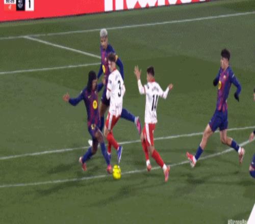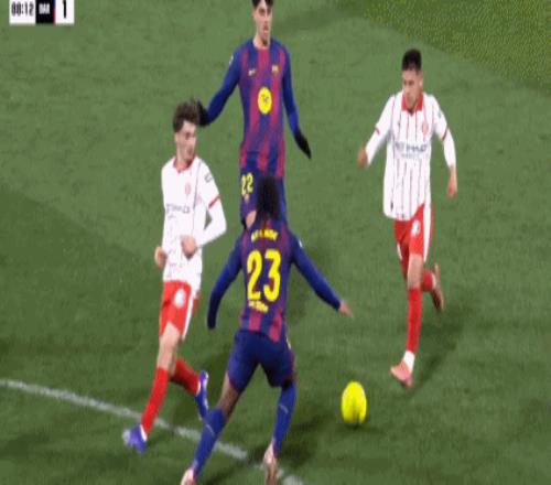 第90+9分钟,霍埃尔-罗卡踢倒亚马尔被直红罚下,赫罗纳少一人作战