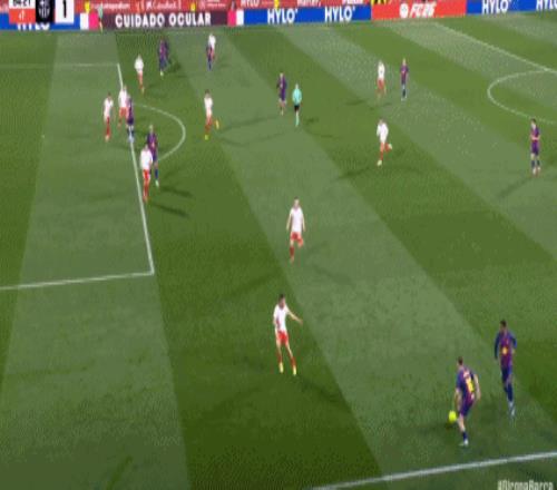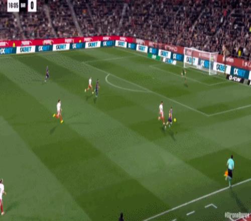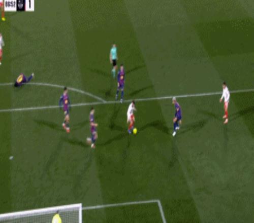 第34分钟,拉菲尼亚直塞,费尔明小角度打门踢飞